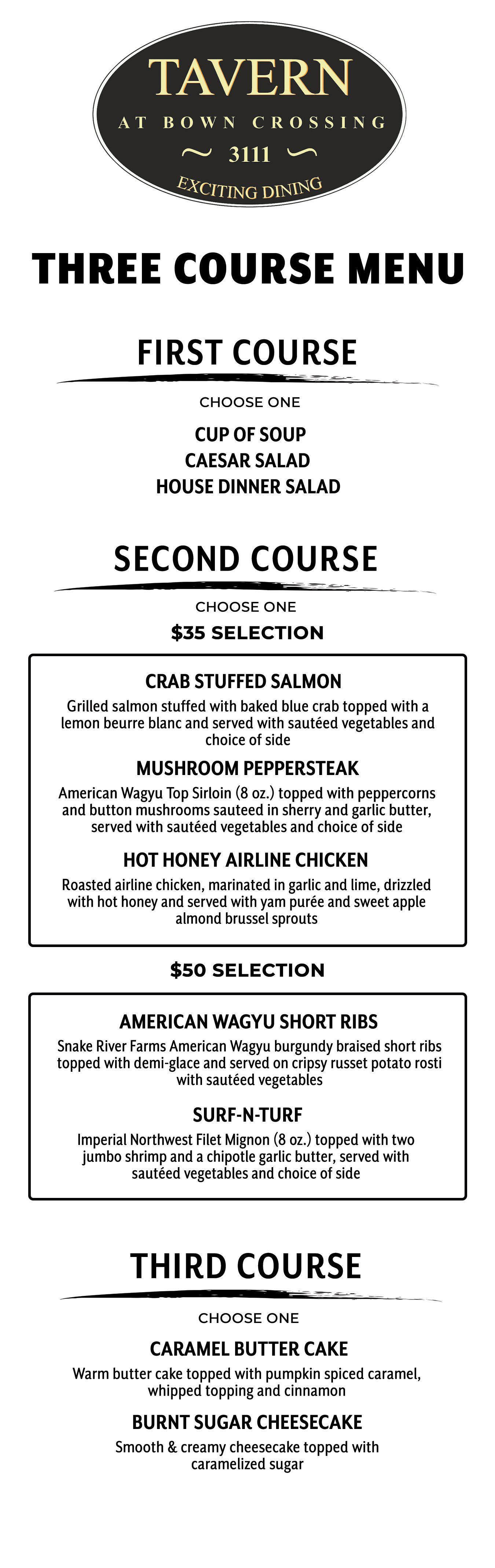 Whether you are craving a perfectly cooked steak or a generous portion size at Tavern at Bown Crossing we have what you want.